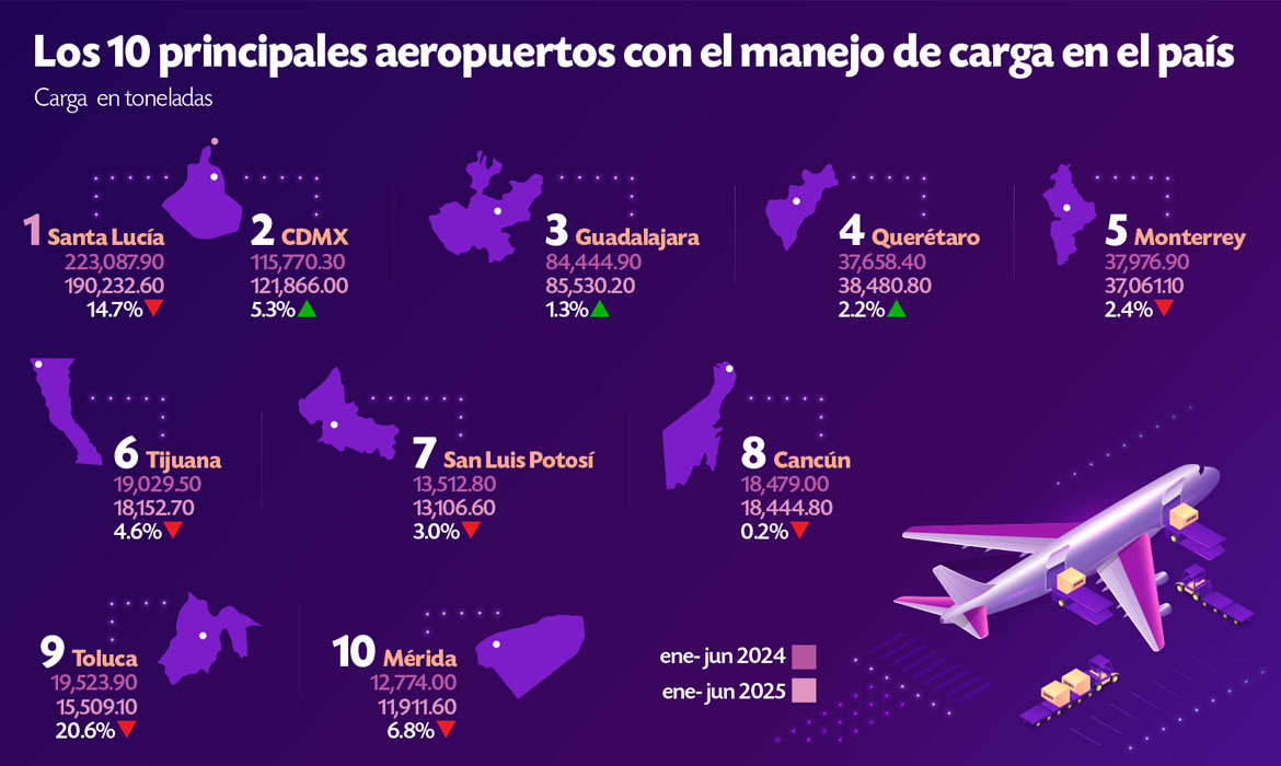 Solo tres aeropuertos de México registraron alza en carga en el primer semestre2025-08-11